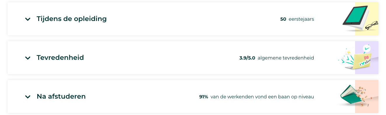 Studie in Cijfers biedt een handig overzicht waarmee je verschillende cijfers over een opleiding kunt bekijken en vergelijken.